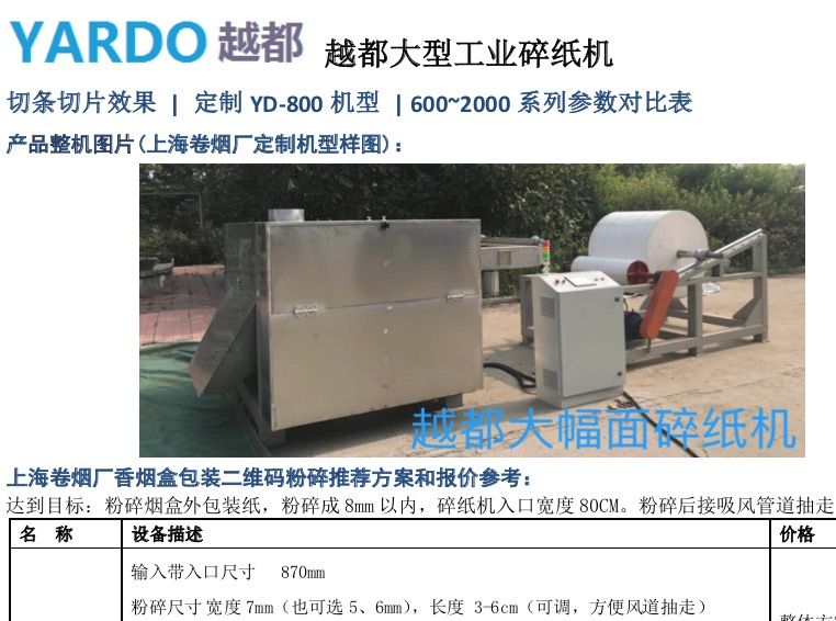 大幅面大型柔性物料粉碎 切斷 切條機 越都600~2500機型參數(shù)對比表